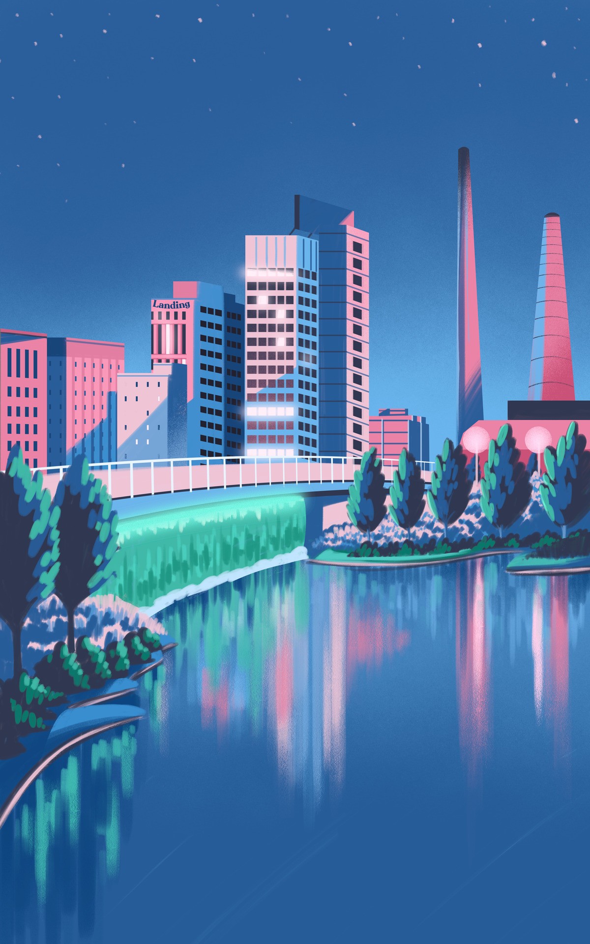 A series of vertical format city illustrations built around iconic landmarks, architectural character, and cultural identity. Each piece was researched independently, diving into what makes each city visually recognizable, then translated into a unified graphic language that could scale across Landing's digital and print touchpoints.
