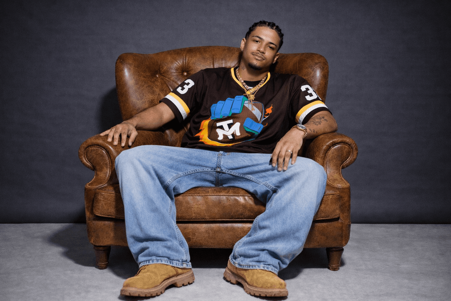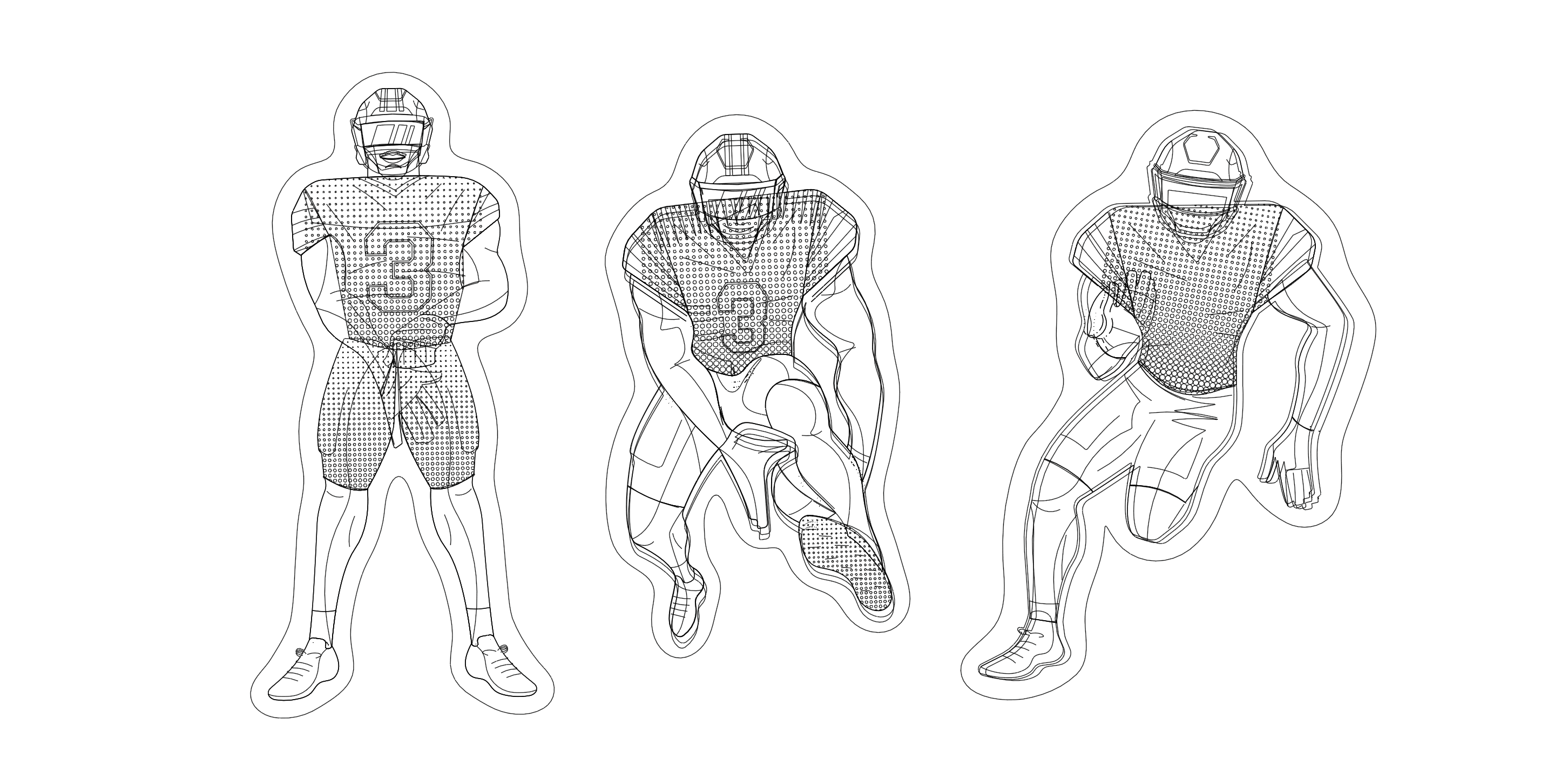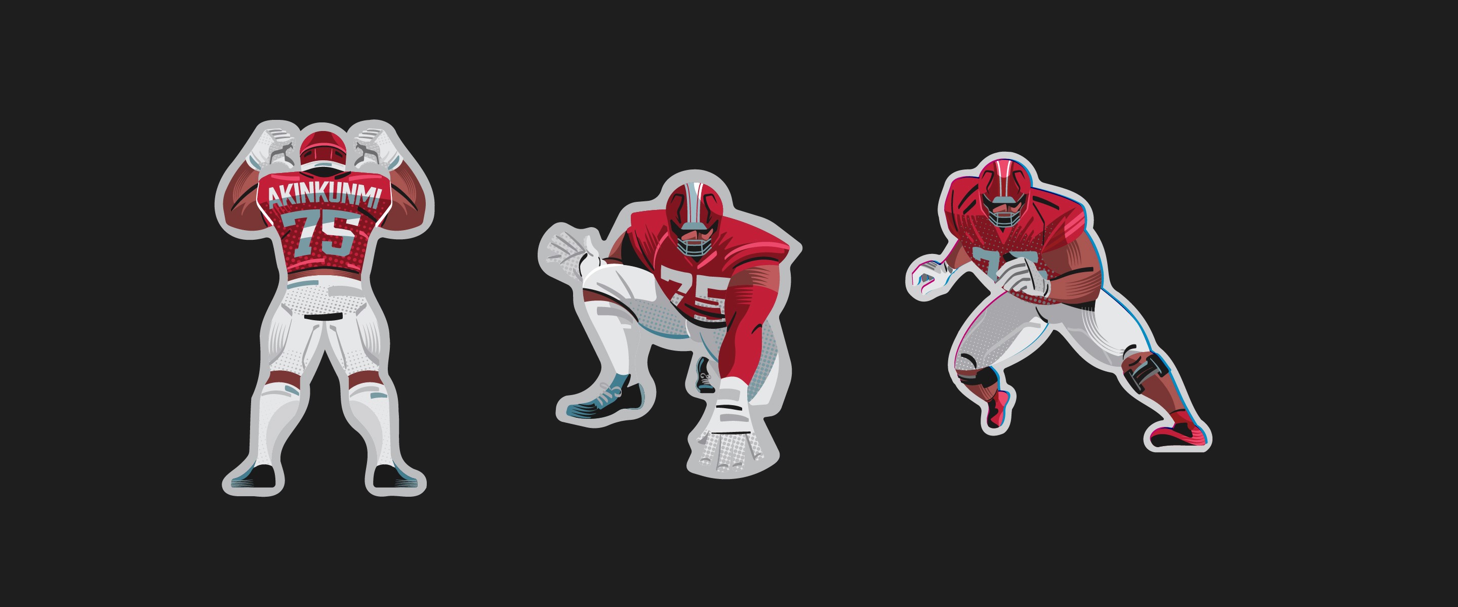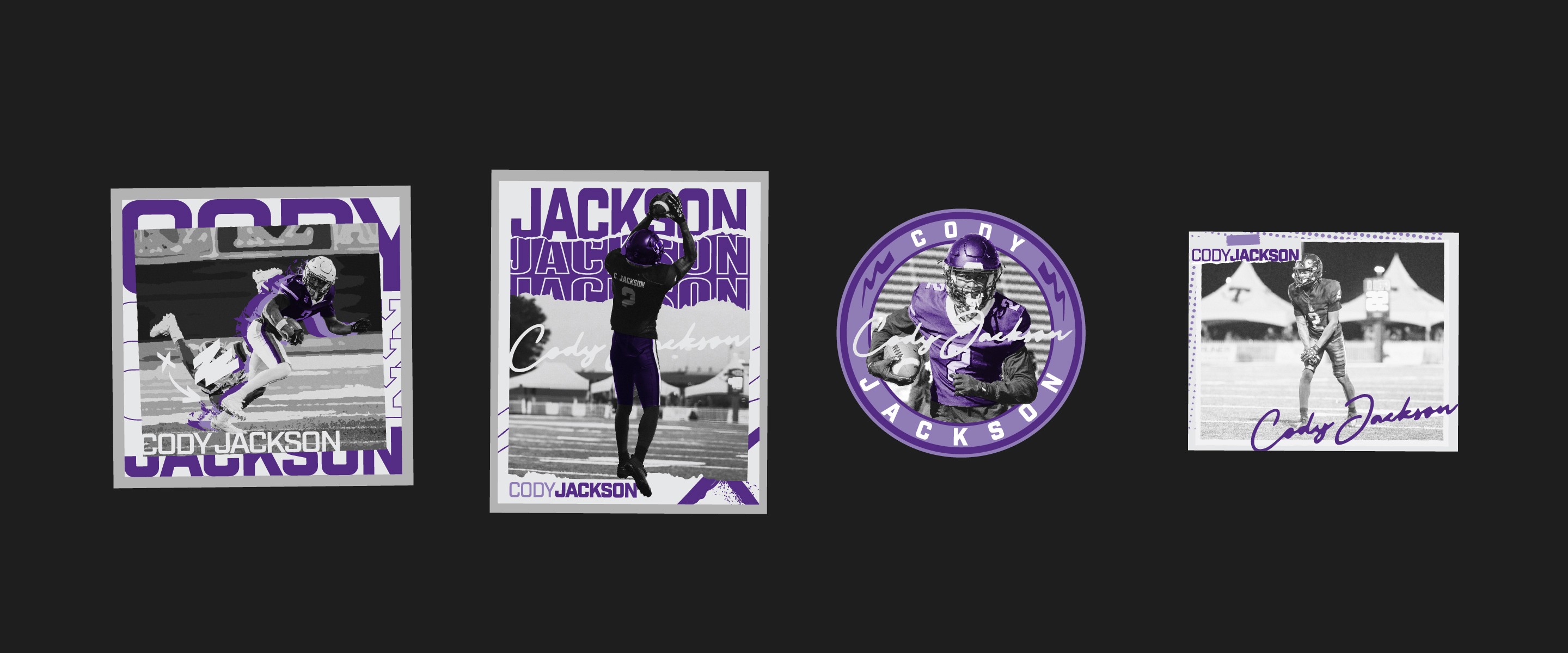 A series of custom merch systems designed for elite American football and basketball athletes, produced through Sticker Mule. Each athlete had their own store, but the work needed a consistent visual language across all of them — illustrated poses, logo design, and photo collages with a grungy, high-energy aesthetic that felt native to sports culture and fan merch.